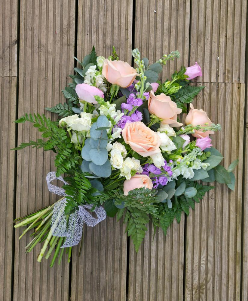 This is a lovely option if you would like something a little different to a traditional tribute, which you could take home after the service if you wish. These tied sheafs are filled with a selection of seasonal flowers and mixed foliage in your preferred colour palette, and can continue to be admired once they have been re-arranged in a vase.